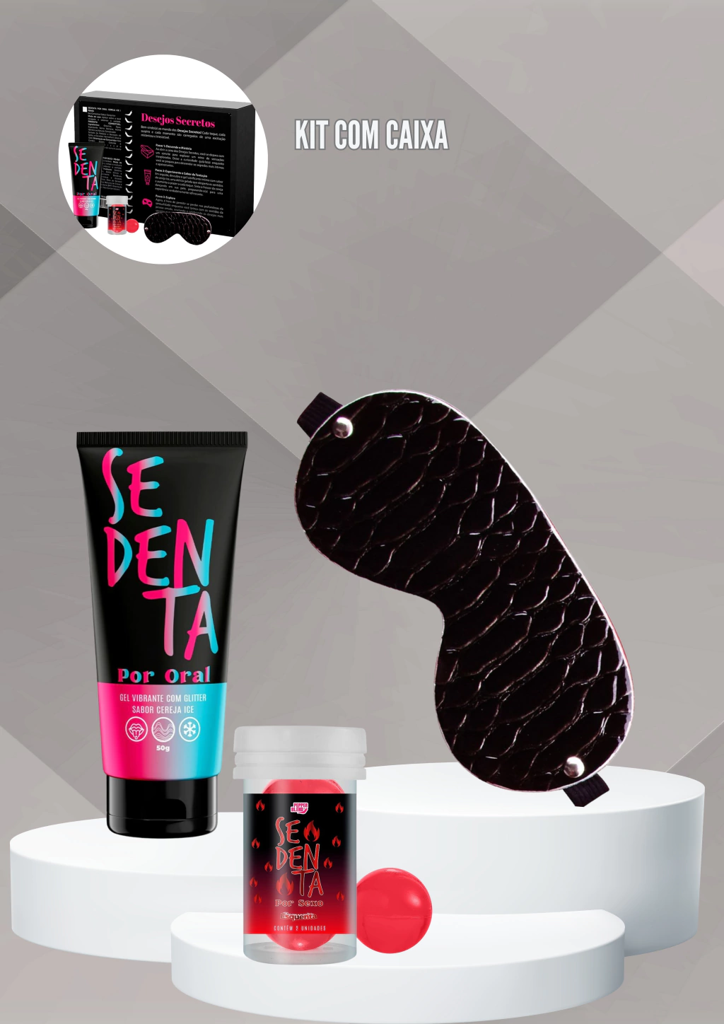 • Sedenta Por Oral - um gel beijável com sabor de Cereja Ice, que traz a refrescância e o toque de vibração ideais para um oral muito mais molhado e intenso.